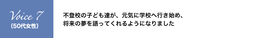不登校の子ども達が、元気に学校へ行き始め、将来の夢を語ってくれるようになりました
