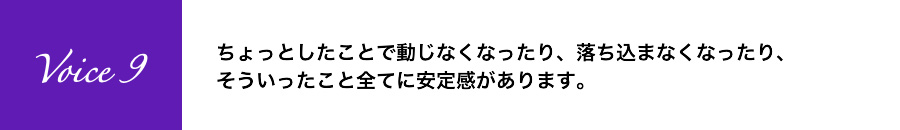ちょっとしたことで動じなくなったり、落ち込まなくなったり、そういったこと全てに安定感があります。
